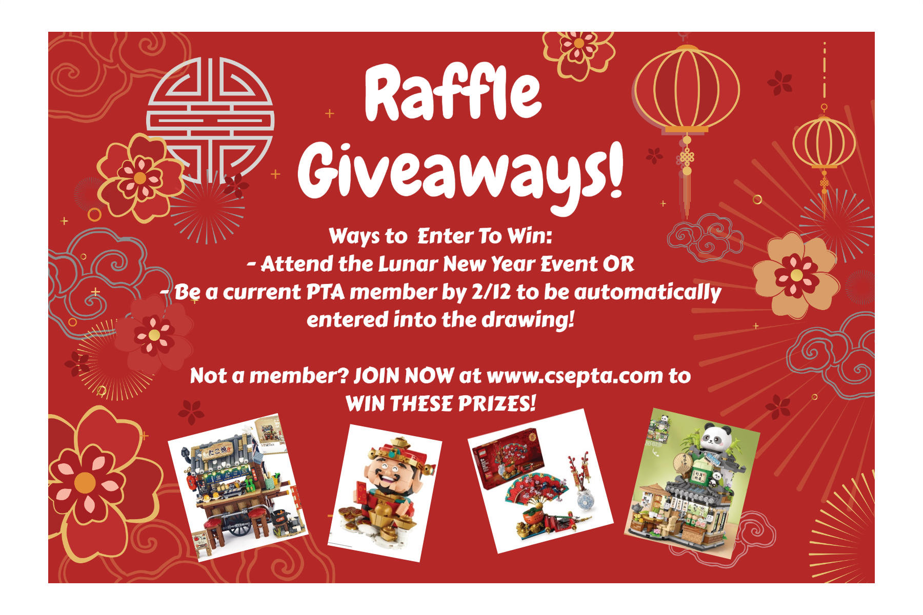 Please see the information regarding PTA's upcoming Lunar New Year event on February 12th. We hope that you will be able to join us for an evening of fun!